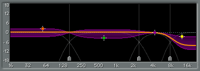 Четвёртая полоса установлена для "компрессии воздуха" или лимитирования; с другой стороны, это может быть прямым эквалайзером, для этого необходимо установить Range в ноль.