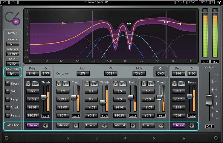 - Отрегулируйте Threshold/Attack/Release в полосах так, как в обычном компрессоре.