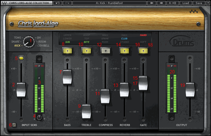 Одно из моих любимых занятий это работа над ударными. При создании плагина CLA Drums, я имел в виду одну вещь: Любой, кто будет его использовать сможет получить отличный звук барабана для любой песни и в любом миксе, и просто получит удовольствие! Есть шесть различных режимов: Kick, Snare, Toms, Overheads, Room и, конечно, мой любимый Cowbell. Есть три цвето-закодированных пресета для эквализации низа, эквализации верха, компрессии и реверберации, а также гейт, чтобы вы могли избавиться от просачиваний лишних инструментов. Фейдеры позволяют контролировать количество каждого эффекта и, что особенно важно для барабанов, мы включили переключатель фазы, чтобы вы могли найти лучшие настройки для набора.