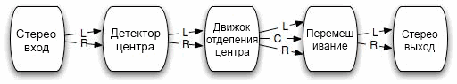 - Центр (или "центральный фантом") - представляет собой моно-сигнал, содержащий равные свойства времени и частот левого/правого каналов.