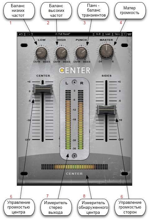 - Punch (панч) - управляет разделением транзиентного материала между центром и сторонами, влияя на обнаружение центра и измеритель обнаруженного центра.