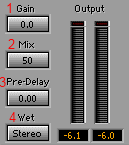 - Gain (усиление) - громкость на выходе (плюс пиковый измеритель).