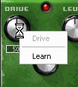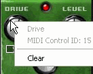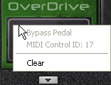 Самый простой способ привязать MIDI событие к параметру ножного эффекта это команда Learn (обучение). Щёлкните правой кнопкой мыши по любому из параметров ножного эффекта тогда отобразится меню MIDI назначения:
