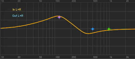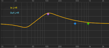 Например, когда Q установлено полностью против часовой стрелки (Q=1), наклон к точке среза гораздо более мягкий, чем наклон у срезающей точки, который гораздо круче в нижней середине. Это создаёт очень музыкальную форму колокола, которая идеально подходит для подъёма или обрезания низких частот.