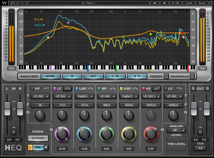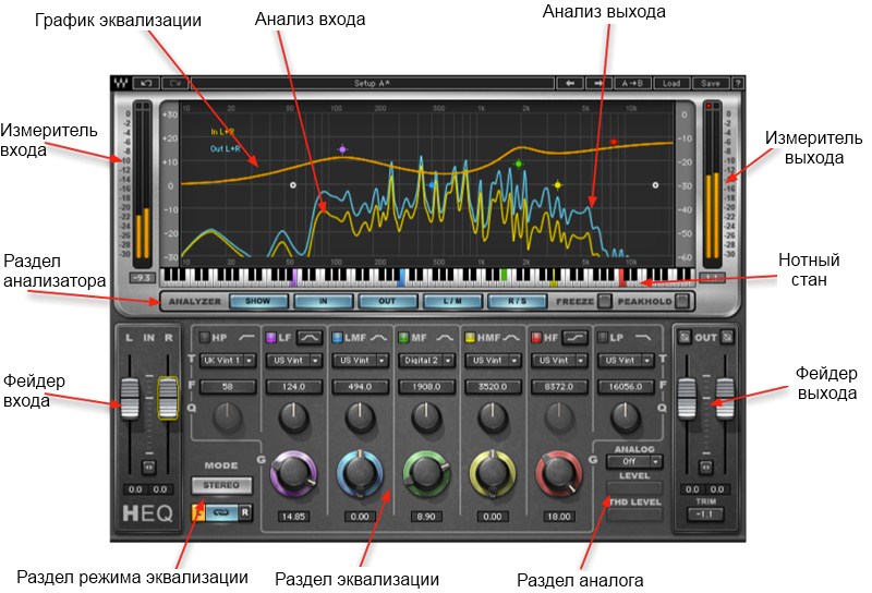 Waves H-EQ представляет собой мощный гибридный эквалайзер который включает в себя: