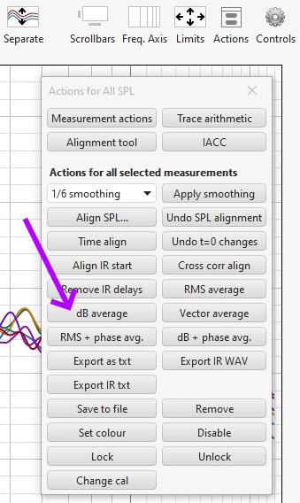 Затем усреднить эти графики, делается это с помощью кнопки dB average.