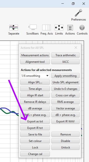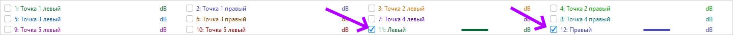В итоге получается 2 графика, для левого и правого каналов. Теперь их надо сохранить в текстовые файлы. Чтобы это сделать в нижней части надо оставить выбранными 2 этих замера.