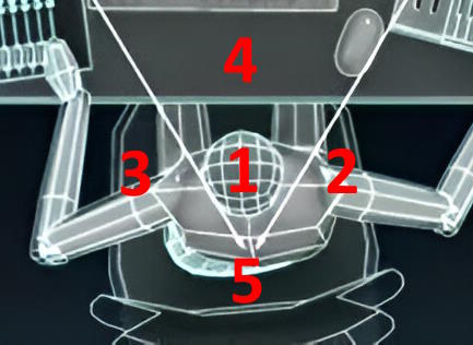 Представим, что это ваше рабочее место. Необходимо определить 5 точек. Первая в максимально правильном месте, там, где сейчас изображена голова. Далее необходимо удобно сесть за рабочее место и обратить свое внимание на то, в какие стороны и на сколько, отклоняется ваша голова, от этой центральной точки. Эти отклонения и будут оставшимися четырьмя точками.