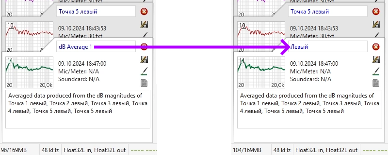В результате в конце списка замеров появится новый замер с названием dB Average 1, переименуйте этот график в «Левый».