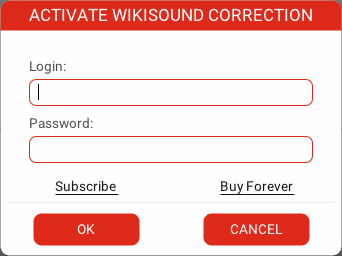 • Ok - нажмите для активации, после заполнения логина и пароля.