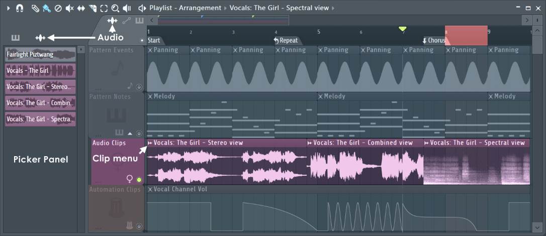См. раздел [[Fl Studio | См. раздел [[Fl Studio плейлист#Меню плейлиста|Меню аудиоклипов]] для дополнительных опций клипа. | ||