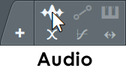 - Значок фокусировки на аудиоклипах (волна) - (щелкните правой кнопкой мыши), чтобы отобразить меню аудиоклипов.
