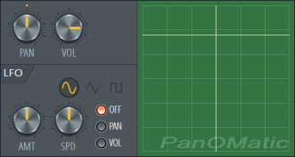 Fruity PanOMatic это плагин панорамирования и уровня, особенно полезен для автоматизации (плагин использует изменение уровня избегающее щелчков и треска). Плагин включает в себя удобную сетку уровня/панорамирования (перетащите крест с помощью мыши) и настройте блок [[LFO]].