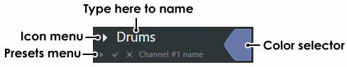 *'''Channel name alignment''' (''выравнивание названия инструмента'') - выберите '''Centered''' (''центрировать'') (по умолчанию) или '''Left''' (''влево'').