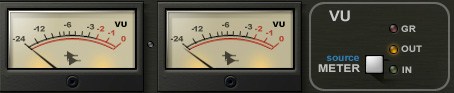 - Диапазон значений: GR (подавление громкости), Out (выход), In (вход)