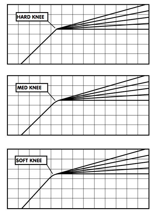 Устанавливает поведение колена, в котором компрессор начинает уменьшать громкость сигнала.