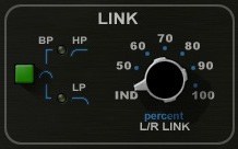 - Shape (форма) - настраивает форму управляющую связывающим напряжением смешивания. HP (фильтр пропускающий высокие частоты), LP (фильтр пропускающий низкие частоты), а комбинация обоих фильтров даёт полосовой фильтр. Установка этой схемы позволяет управлять связывающим напряжением, не учитывая определённые частоты. Различные комбинации фильтров могут быть использованы например, для того чтобы предотвратить ситуацию когда перкуссионные инструменты одного из связанных каналов могут вызывать нежелательное сжатие другого.