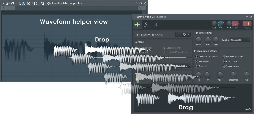 Иногда бывает полезно тщательно выровнять данные автоматизационных событий со звуковым сигналом. Например, при использовании Fruity Vocoder или Pitcher. Для отображения сигнала перетащите его из окна предпросмотра в окно редактора событий. Для того чтобы убрать сигнал нажмите (Alt+N).