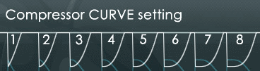 • CURVE (огибающие атаки и восстановления) - выберите от кривой 1 (крутой наклон) до 8 (низкий наклон).