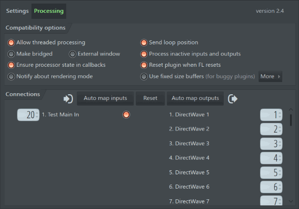 • Process inactive inputs and outputs (обработка неактивных входов и выходов) - некоторые плагины отмечают один или несколько из своих выходов/входов, как "неактивные", даже если они используются. По умолчанию FL Studio не обрабатывает такие неактивные входы/выходы, звук не производится. Эта опция гарантирует, что FL Studio обработает эти "неактивные" выходов.