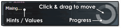 Панели подсказок особенно полезна. Поместите указатель мыши на любой параметр и здесь появится краткое описание. Если вы нажмете и передвинете параметр, то здесь будет отображено его значение (щёлкните правой кнопкой мыши и скопируйте значение желаемого параметра). Точно так же наведите курсор на пиковый измеритель в микшере, и здесь будет показано точное значение в позиции курсора. Справа вы найдёте различные поясняющие значки относящиеся к элементу на который вы навели курсор: