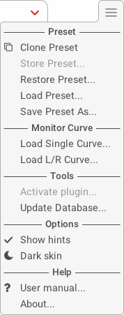 - Load Single Curve (загрузить одиночную кривую) - выберите данную команду если вы хотите загрузить одну кривую коррекции. После выбора укажите путь к .txt файлу. В результате в меню пресетов +User появится новый пресет с названием User... с соответствующим порядковым номером.