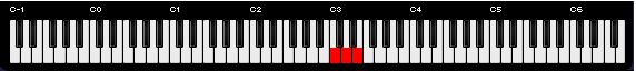 Примечание: Воспроизводимые ноты на Миниклавиатуре будут подсвечиваться желтым цветом. Ноты, подсвеченные красным цветом - это ноты, задействованные функцией Note Learn в режиме LIVE, и отображаются только как ссылки.
