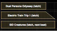 Чтобы активировать режим Latch для Части, щелкните правой кнопкой, удерживая клавишу [Control] на регионе Части, и выберите опцию “Latch Mode” из контекстного меню. Когда режим Latch для Части активирован, рядом с опцией меню режима Latch появится галочка, и к названию Части в сетке Режима Stack появится слово “Latch”. Чтобы отключить режим Latch для Части, из контекстного меню этой Части повторно нажмите “Latch Mode”. Когда режим Latch для Части будет деактивирован, галочка с опции меню Latch Mode будет снята, и слово “Latch” в названии Части отображаться не будет.