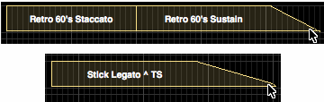 Примечание: Используя метод CC, все Части, добавленные к Сетке Режима Stack, будут запускаться одновременно при воспроизведении нот, даже если их регионы будут вне диапазона значений CC. Поэтому, эта функция может быть требовательна к ресурсам процессора.