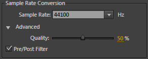 - В разделе Advanced, перетащите ползунок Quality (качество) для настройк качества преобразования сэмплов.