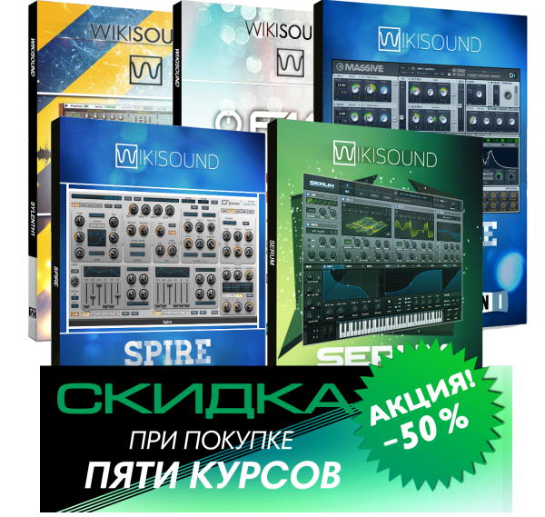Акция, при покупке 5 видеокурсов по синтезаторам, скидка 50%. Узнать о курсе Sylenth1Узнать о курсе SerumУзнать о курсе MassiveУзнать о курсе FM8